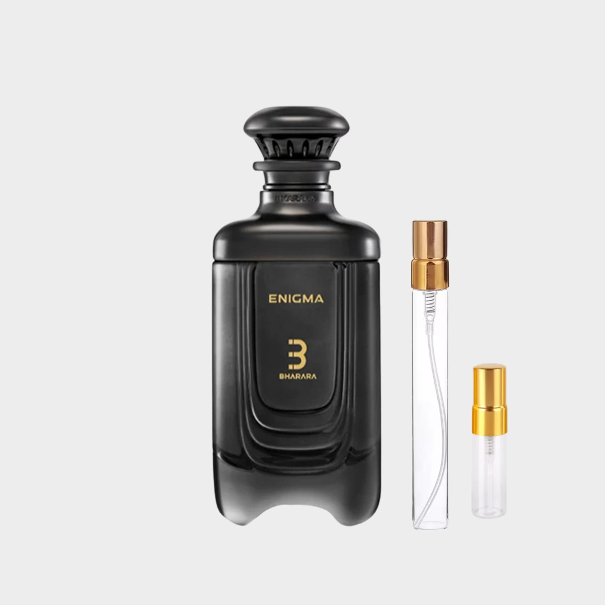 Enigma de Bharara es una fragancia unisex de la familia ámbar-amaderada oriental, que combina calidez, sensualidad y profundidad. Se abre con un estallido sofisticado de bergamota y azafrán, aportando un toque cítrico especiado cautivador. En su corazón, la rosa búlgara se funde con un oud ahumado, creando un contraste elegante entre lo floral y lo oscuro. La base sostiene esta intensidad con notas de ámbar, musgo de roble (oakmoss), caña de azúcar y tonka bean, proporcionando un secado seductor, dulce y envolvente que perdura en la piel.